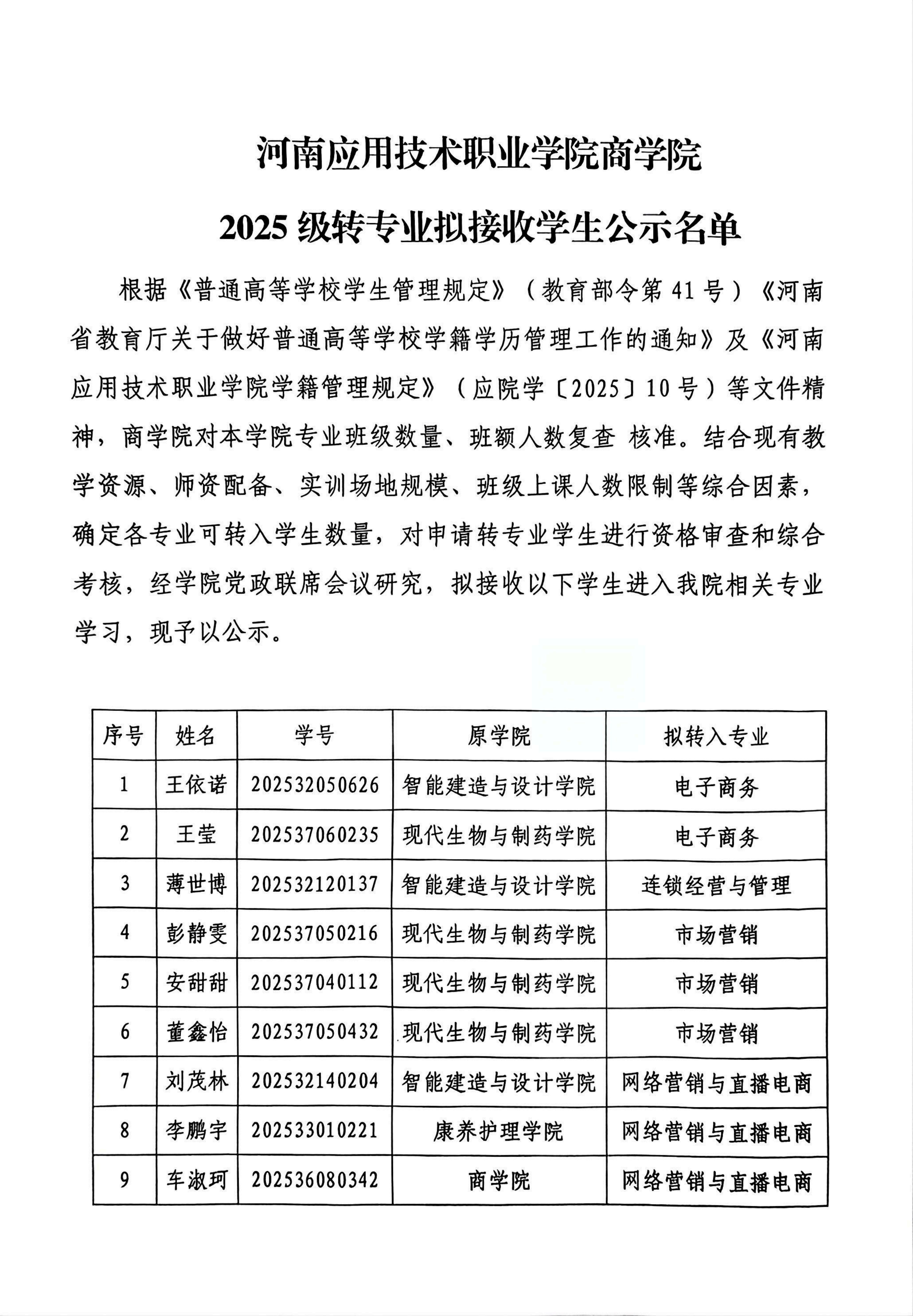 永利集团官网永利集团官网 2025级转专业拟接收学生公示名单
