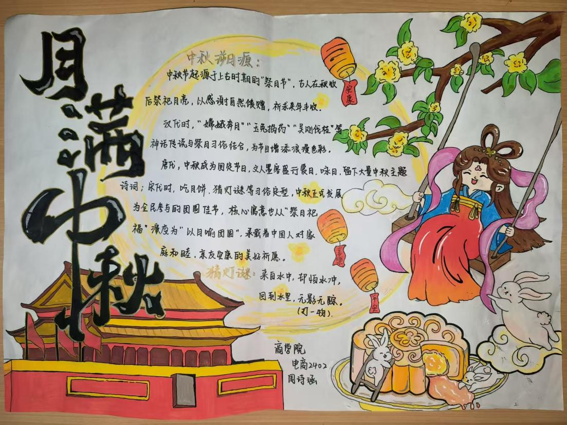 活动以文化体验为核心,同步举办手抄报设计与书法创作比赛,吸引全院学子参与,在笔墨书香中共度团圆佳节,展现商院青年的文化担当与青春风貌。