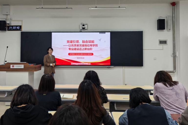 本次专题党课从四个方面详细介绍了党建促进专业建设的实践路径:一是深化课程思政融合。深度挖掘商科专业课程中的思政元素,将“红色基因”有机融入案例教学、社会实践和学科竞赛全过程,着力培养具有家国情怀、全球视野、专业精湛的卓越商科人才。二是加强师资队伍建设。全面推进“双带头人”教工党支部建设,依托“双带头人”的示范带动作用,搭建教学研讨、技能提升、校企合作交流平台,通过联合企业实践培训、参与行业课题研究等方式,系统性提高“双师型”教师比例,打造“党建强、业务精”的师资团队。三是强化科研方向引领。创新“党建+有组织科研”模式,组建党员科研攻坚小组,聚焦专业转型与产教融合关键领域。四是创新人才培养机制。构建“课堂教育—社会实践—专业探索”三阶递进育人模式,设立“党员领航计划”,全面促进学生综合素质提升,充分体现党建在人才培养中的显著成效。