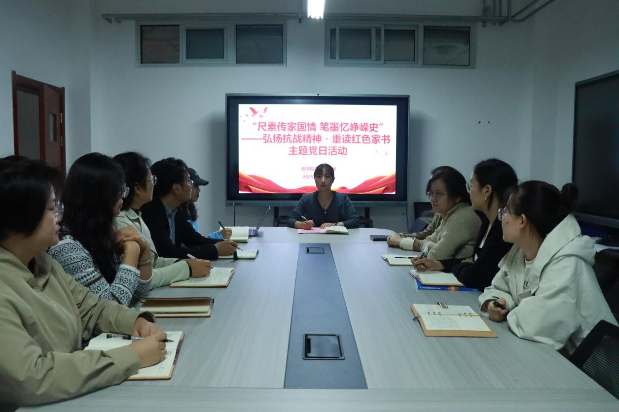 为深入引导永利集团官网学工党支部党员教师从红色家书中汲取精神养分、厚植家国情怀,9月23日,永利集团官网学工党支部以“尺素传家国情 笔墨忆峥嵘史”为主题,开展弘扬抗战精神・重读红色家书主题党日活动,本次活动由党总支副书记王倩主持,学工党支部全体党员教师参加。