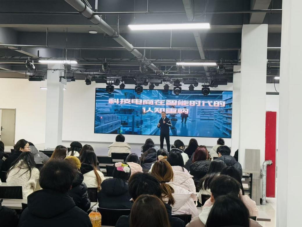 12月29日,资深数字媒体产业专家、中国数字媒体产学研联盟特聘专家鲍鹏杰,以“AI驱动下科技电商的认知重构与实践创新”为主题开讲。他结合二十余年实战经验,从时代背景等四大维度展开讲解,指出AI、大数据重塑电商格局,行业已从“流量思维”转向“价值创造”,迈入全链路智能化决策4.0时代。他拆解技术与商业融合路径,明确无界零售是必然趋势,并鼓励同学们夯实基础素养,提升专业技能与行业视野。