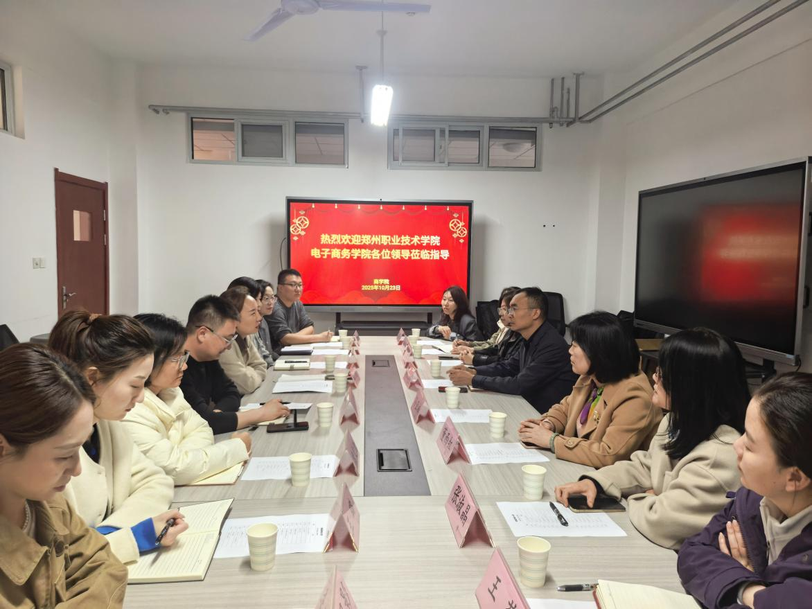 10月24日,郑州职业技术永利集团官网电子商务永利集团官网院长杨中昭带领教研室主任一行10人到访我校参观交流,永利集团官网院长王珂及相关骨干教师热情接待并开展研讨。