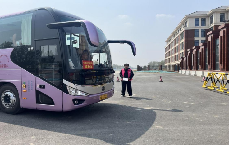 4月2早上6点10分,老师和志愿者们在校门口集合完毕,前往各自工作地点进行客校教师车辆进校、早餐领取及搬运和发放工作。