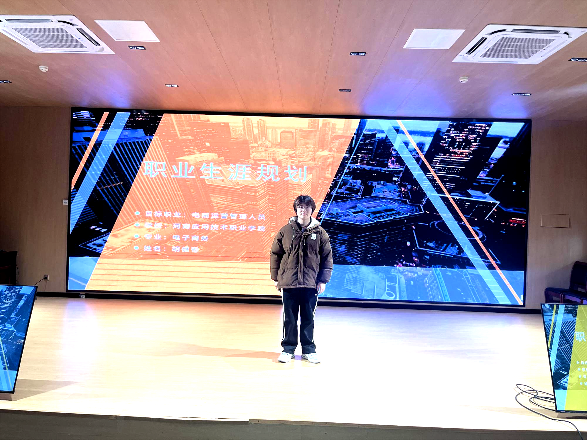 比赛现场,选手们结合自身专业特点、兴趣爱好以及市场需求,从自我评估、职业环境分析、职业目标确定、实施计划制定以及评估与调整等多个方面对个人职业生涯规划进行了详细阐述。不仅展现出扎实的专业知识和清晰的职业规划思路,还彰显了自信大方的演讲风采和良好的应变能力。