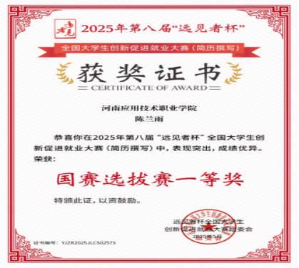 2025年第八届“远见者杯”全国大学生创新促就业大赛(简历撰写)国赛选拔赛一等奖