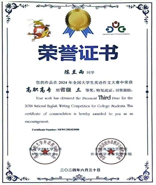 2024年全国大学生英语作文大赛省级三等奖