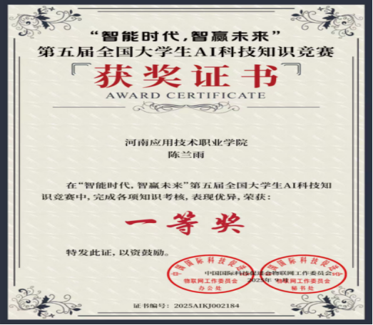 2025年“智能时代,智赢未来”第五届全国大学生AI科技知识竞赛一等奖