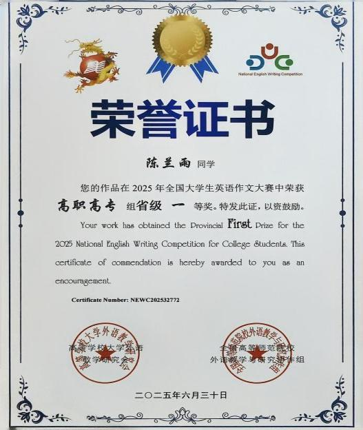 2025年全国大学生英语作文大赛省级一等奖