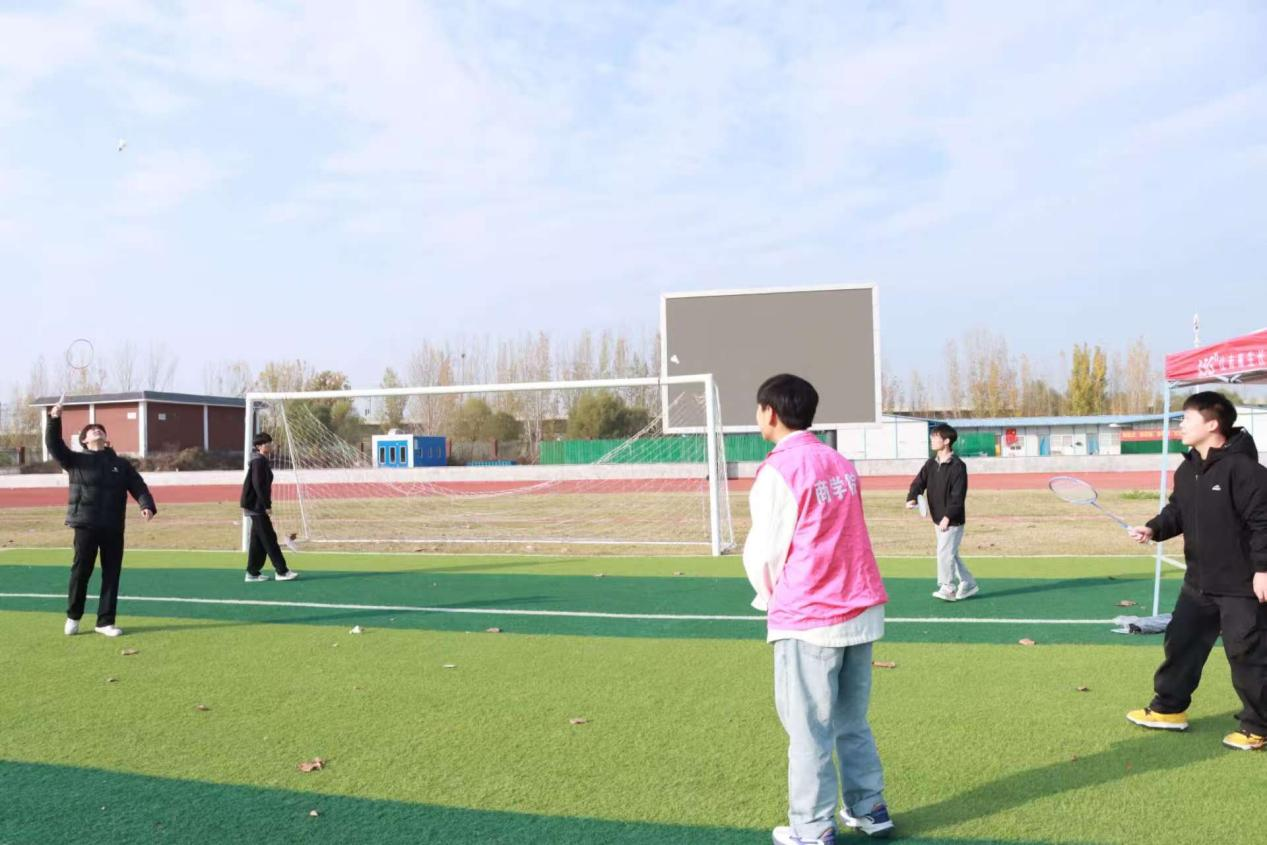 自由运动环节成为整场活动的核心:羽毛球区没有对抗赛制,学生们自由结伴,或轻挥球拍传递球技,或笑着调侃“失误球”,享受协作的惬意;跳绳区里,有人独自跟着节奏轻跳,有人两两搭档同步起落,还有一群人围着多人跳绳欢呼接力,只凭脚步与绳索的互动释放情绪;乒乓球区同样不设竞技目标,学生们随意组队,球台旁的笑声与球拍击球声交织,成为最治愈的背景音。整个过程中,没有名次争夺,没有输赢压力,只有运动带来的畅快与同学间的轻松互动。