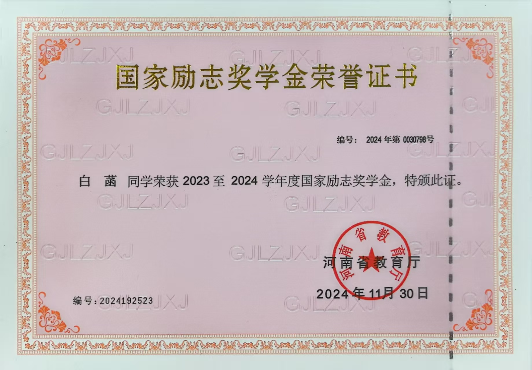为了让理论学习更扎实,她摸索出适合自己的学习方法:课前提前翻阅教材,圈出不理解的内容,带着问题听课;课上针对疑惑点主动向老师和同学请教,参与课堂讨论时积极分享自己的思考;课后及时整理课堂笔记,用简单的图表梳理章节逻辑,将零散的知识点串联成体系。长期的坚持让她的学业成绩稳步提升,稳居专业前列,也因此先后荣获2024年11月“三好学生”称号、2024年11月国家励志奖学金。