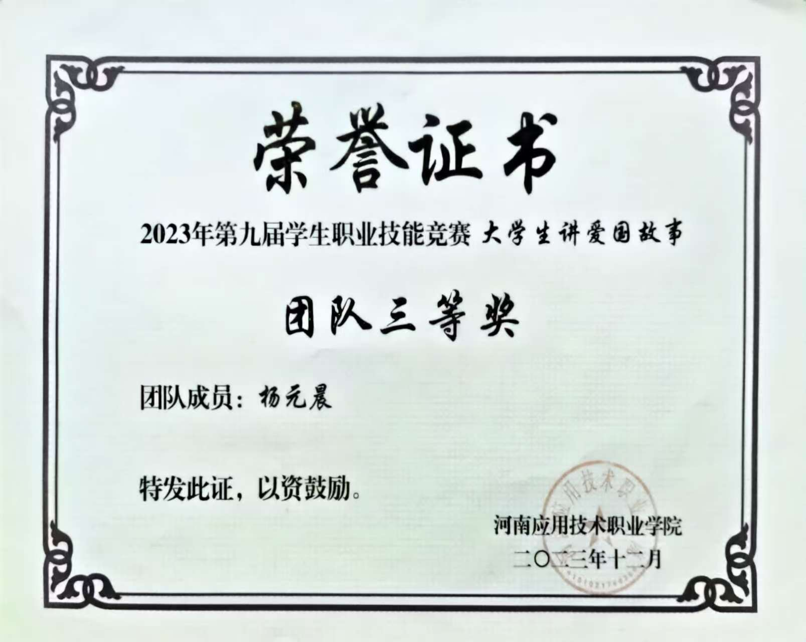 作为一名学生,杨元晨深知学业是本分。她的努力结出了丰硕的果实:学年量化评分高居班级榜首,综合成绩位列班级第二。她的学习成果远不止于课堂成绩,2024年取得国家励志奖学金,也通过自己的努力考取了“中级电子商务师”“1+X呼叫中心客户服务”“二级甲等普通话”等职业技能证书;同时在技能竞赛方面,也取得了一些相应的成绩,“挑战杯大学生创业竞赛”省级银奖4项,“中国国际大学生创新大赛”省级银奖1项,“职业生涯规划大赛”省级铜奖“电子商务技能竞赛”校级三等奖等;在文化素养和表达能力方面,杨元晨同学同样出色,经过不懈努力,她成功斩获“文明风采经典诵读比赛”省级银奖、“校史我来讲,历程谱华章”校级二等奖等。