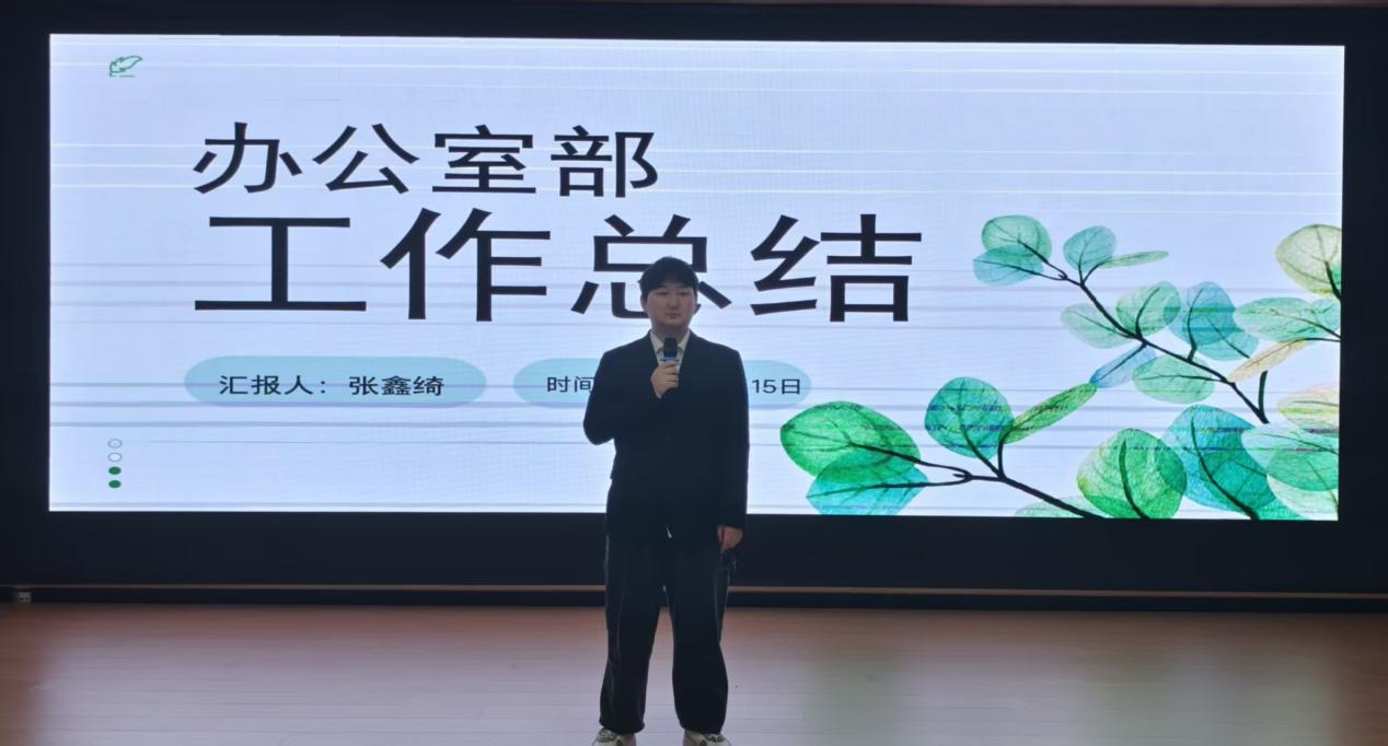 各部门述职结束后,主席团成员进行总结发言。从统筹协调、活动开展、队伍建设三个维度回顾了学生会全年工作,既肯定了各部门的亮眼成绩,也直面部员成长梯队建设不完善、跨部门活动联动性较弱等问题,并提出针对性改进方向。
