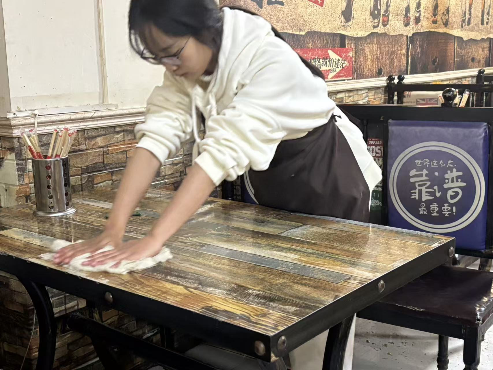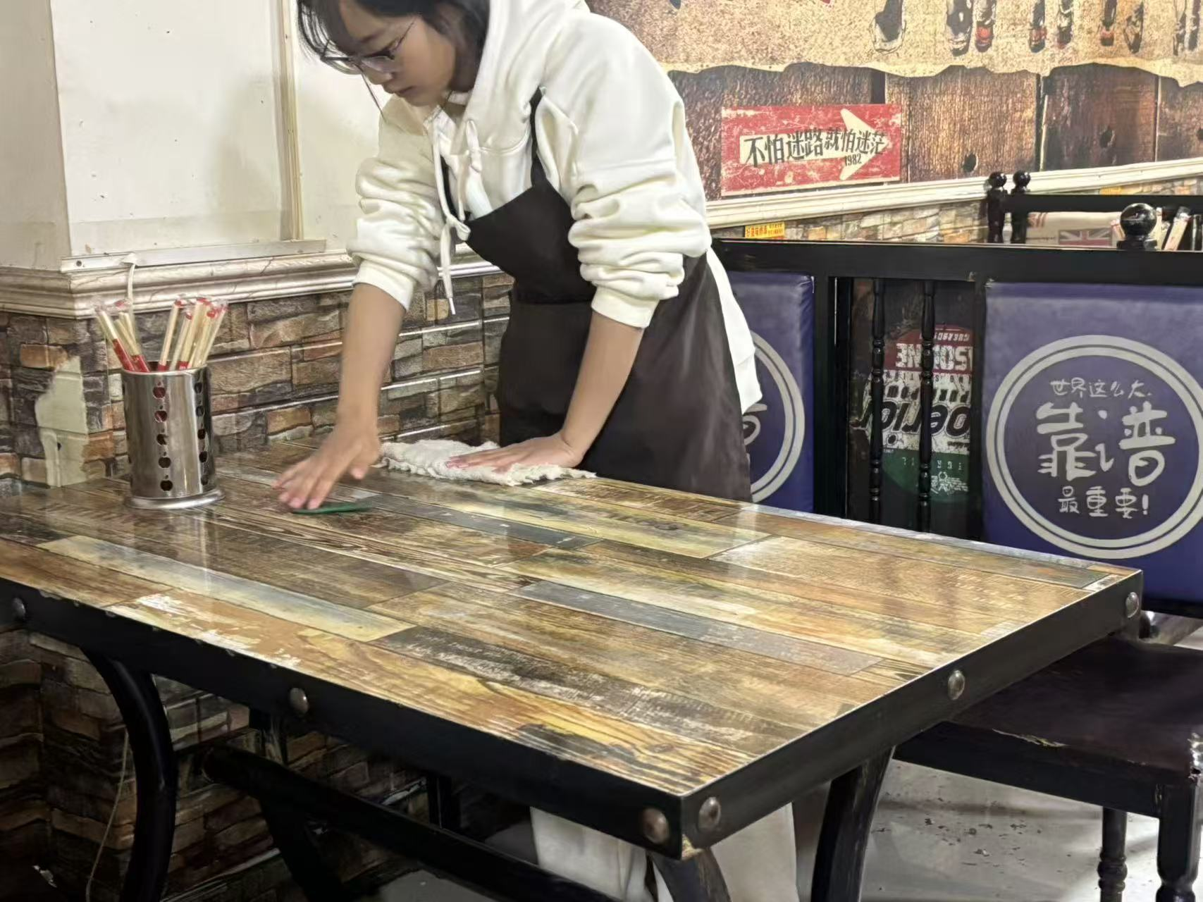 在工作内容上,我每天提前到店,先对餐桌、餐椅进行全面擦拭与消毒,确保用餐环境干净整洁;顾客用餐后,及时清理桌面残渣、更换桌布,并将餐具送至后厨清洗;高峰期时,协助店员引导顾客就座、传递菜单、端送菜品,同时解答顾客关于菜品口味、价格的简单咨询。此外,我还参与了店内的日常整理,如补充餐具、摆放调料、整理菜单等琐碎工作。