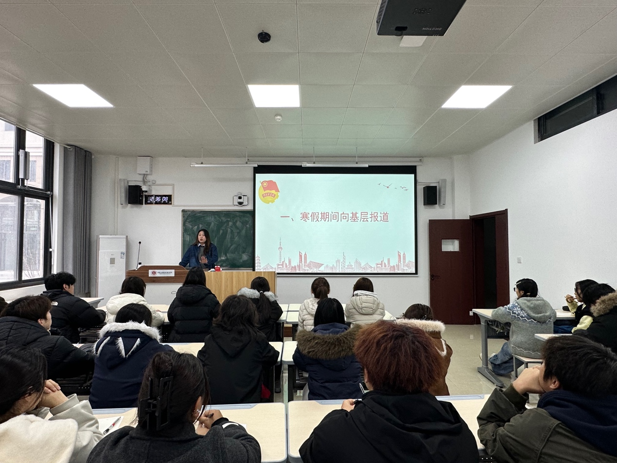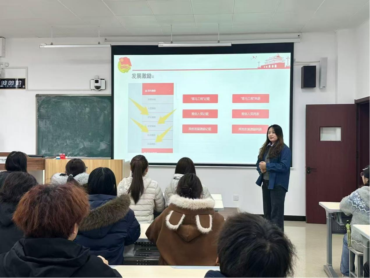 在团支部工作介绍环节,贺苗苗重点围绕本学期团务工作展开培训。她首先强调了团支部在支部建设中的核心作用,随后,讲解了寒假社会实践成果的规范提交要求,并说明了本学期“优化团课形式”的具体标准:要求每次团课不少于1学时、团支书要做好图文记录与总结反思、并及时录入智慧团建系统等要求。
