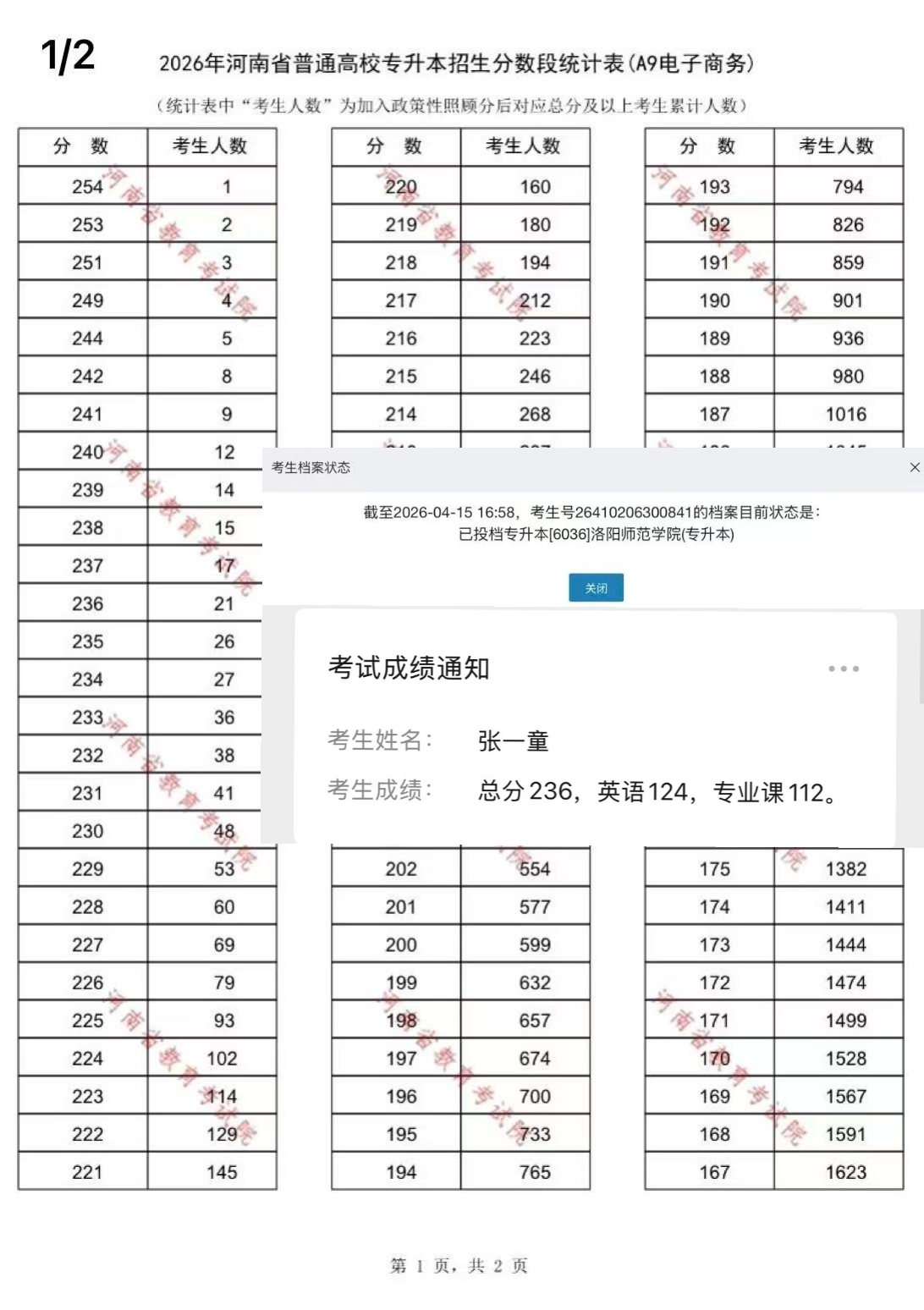 物流2303班张一童以总分236分,排名电子商务专业河南省第18名。