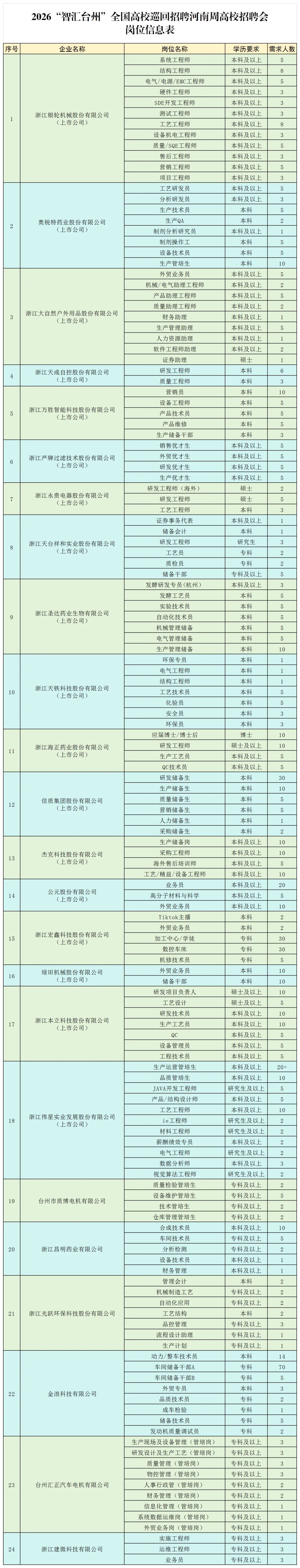 本次活动汇聚浙江省台州市110余家企事业单位优质资源,覆盖新能源、新材料、新医药健康、汽车制造、合成生物、精密制造、新一代信息技术等多个重点产业领域,以“线上+线下”模式送上3000+岗位。