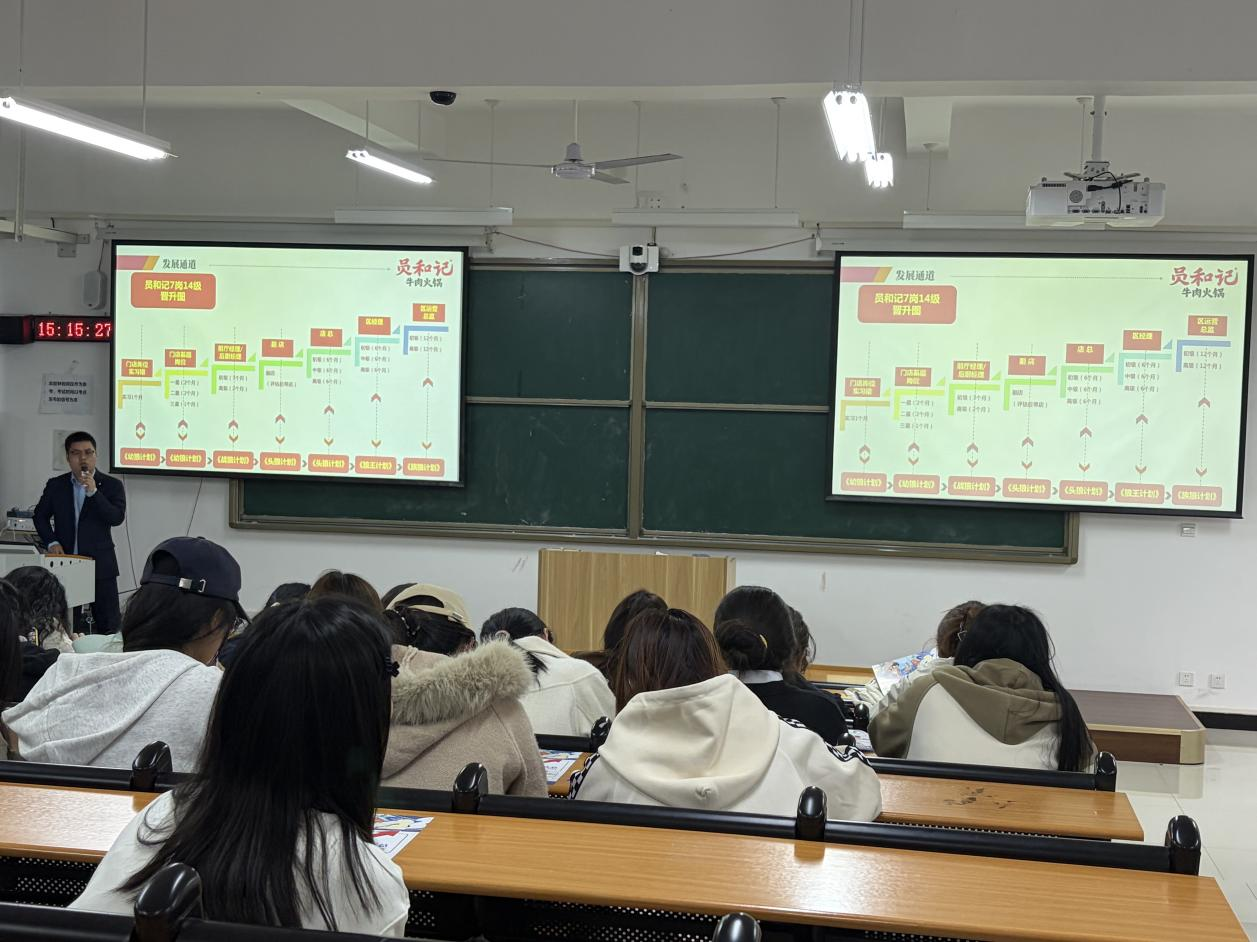 活动现场气氛热烈,各企业代表通过多种形式全方位展示自身魅力。PPT展示条理清晰,视频播放生动直观,面对面交流亲切真诚。企业代表们详细介绍了企业发展历程、独特的企业文化、具体的岗位需求、优厚的薪资福利以及清晰的职业发展路径等信息,让同学们对企业有了更深入地了解。