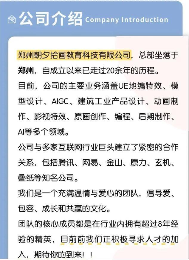 郑州朝夕拾画教育科技公司招聘工作人员!专科及以上